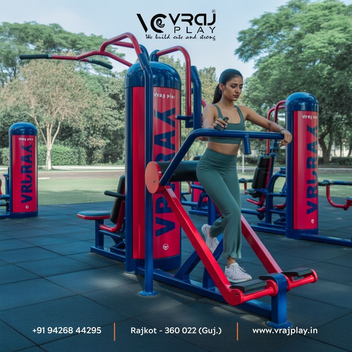 Vraj Play – a trusted brand of Vraj Composites Pvt. Ltd., is a leading manufacturer and supplier of outdoor gym equipment in Surat, supporting Smart City fitness and community wellness projects.